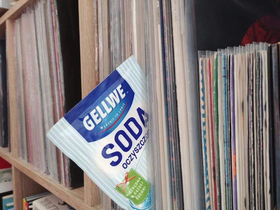 Kolejnym sposobem jest zastosowanie sody jako naturalnego neutralizatora zapachów, dla wzmocnienia efektu można zastosować olejki eteryczne. Proporcje? Tak naprawdę zależne są od tego, jaki efekt chcemy uzyskać. Większa ilość olejków eterycznych spowoduje, że okładka przejmie ich zapach. Używając samej sody uzyskamy bardziej "świeży" zapach. Niestety również ta metoda nie jest wolna od wad. Aby taka mieszanina była skuteczna, musi dostać się w każdy zakamarek, inaczej zapach bardzo szybko powróci. Czy jest ktoś, kto chciałby po roku czasu przy każdym wyjęciu płyty wysypywać przy tym biały proszek? Sytuacja niezręczna, zwłaszcza gdy chcemy pochwalić się płytą przy znajomych melomanach. Nie mówiąc już o tym, że proszek może doprowadzić do zabrudzenia i w konsekwencji uszkodzenia nośnika!