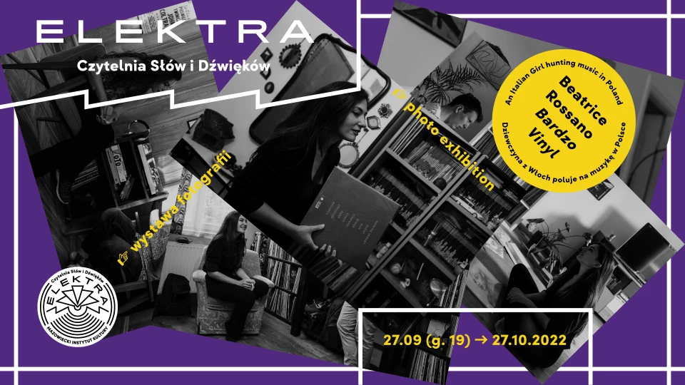 Wprost z Neapolu na Elektoralną przybyła Beatrice Rossano – dziewczyna z Włoch, która poluje na muzykę w Polsce! Autorka bloga BardzoVinyl, gdzie publikuje wywiady z ludźmi tworzącymi polską kulturę winylową. W Elektrze zaprezentuje wystawę fotograficzną, ukazującą intymne spotkania z ludźmi pełnymi winylowej pasji. Podczas wernisażu Beatrice, odbędą się mini-targi winylowe i sety djskie!