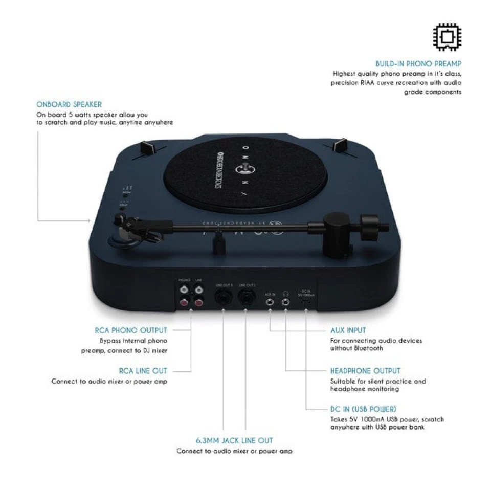 Jak zapewnia producent "OMNI to odtwarzacz zarówno muzyki analogowej, jak i cyfrowej, a w szczególności dla miłośników winyli, poszukujących wysokiej jakości gramofonów, które zapewniają lepszą jakość dźwięku oraz funkcjonalność. OMNI odtwarza 7-calowe, 10-calowe i 12-calowe płyty winylowe, a w pełni regulowane ramię oraz headshell [standardowo w zestawie wkładka AT3600L - możliwość upgrade'u] zapewniają wysokiej jakości dźwięk stereo. Co więcej, wbudowany odbiornik audio bluetooth umożliwia odtwarzanie ulubionej muzyki wprost z naszego smartfona.”