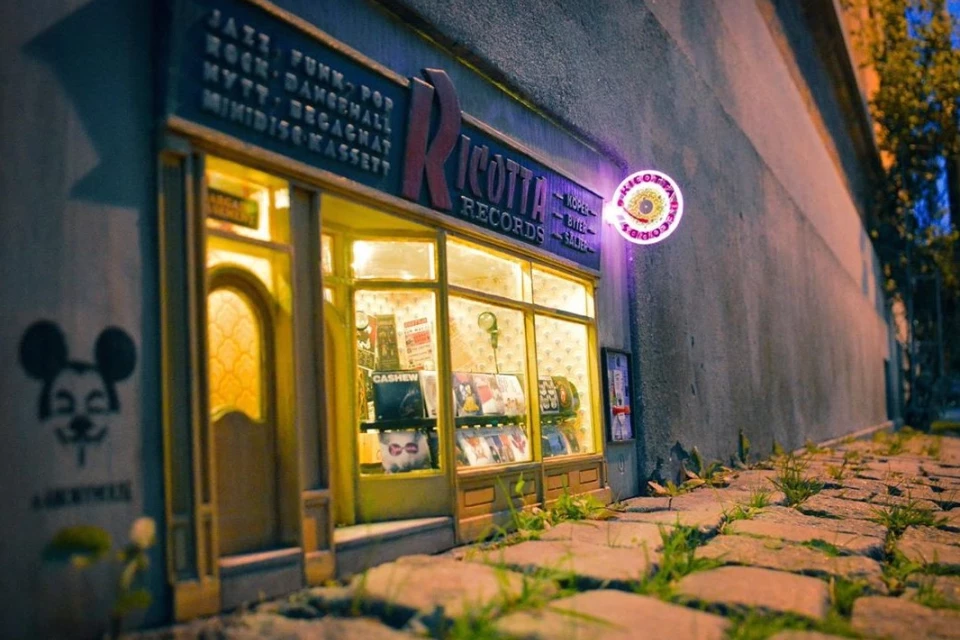 Sklep Ricotta Records to najnowsza instalacja grupy artystycznej, która tworzy i wystawia miniaturowe dzieła sztuki. Tak jak w przypadku wcześniejszych instalacji – mysiej apteki, restauracji czy parku rozrywki – mini sklep płytowy został umieszczony na jednej z ulic szwedzkiego Lund. Mały sklepik został wykonany z wielką dbałością o szczegóły. Znajdują się tam płyty, plakaty, instrumenty muzyczne oraz meble.