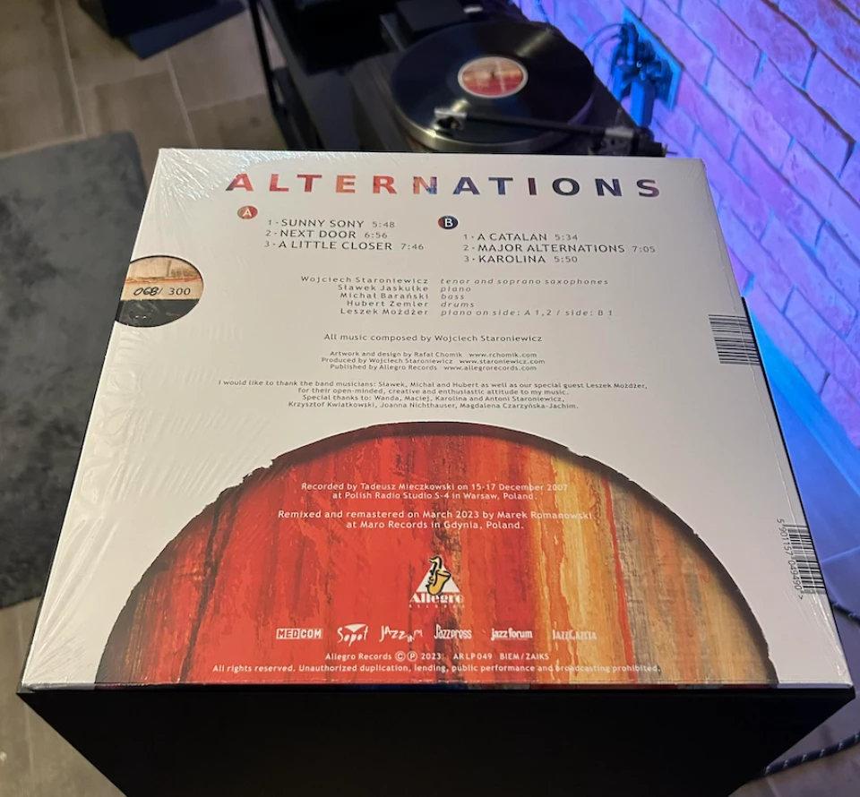 Ta dość ascetycznie wydana płyta winylowa przynosi przyjemne jazzowe ukojenie, a do tego kilka wyjątkowo zapadających w pamięć fragmentów. „Alternations” Wojciecha Staroniewicza to kolejna publikacja saksofonisty w prowadzonej przez niego Allegro Records.