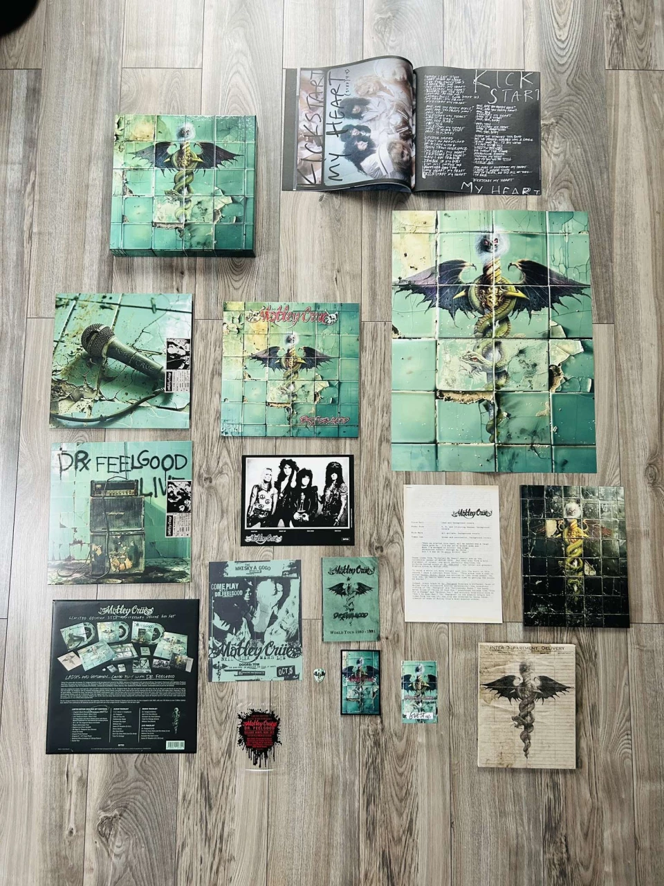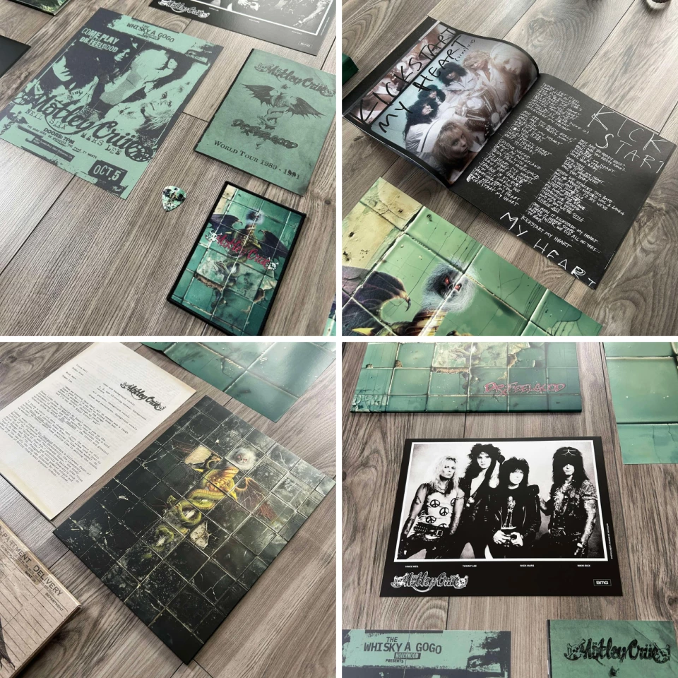 Dodatki. Tutaj twórcy i graficy naprawdę stanęli na wysokości zadania, bo dostajemy całe spectrum gadżetów nawiązujących do albumu. Czego tu nie ma: album z niepublikowanymi zdjęciami i tekstami, plakat z okładkowym motywem (18 cm x 24 cm), replika przepustki koncertowej, naszywka, plan trasy, repliki informacji prasowej, zdjęcia prasowe, folder, koperta i wisienka na torcie w postaci piórka gitarowego, którego z pewnością używał Mick Mars (he he he).