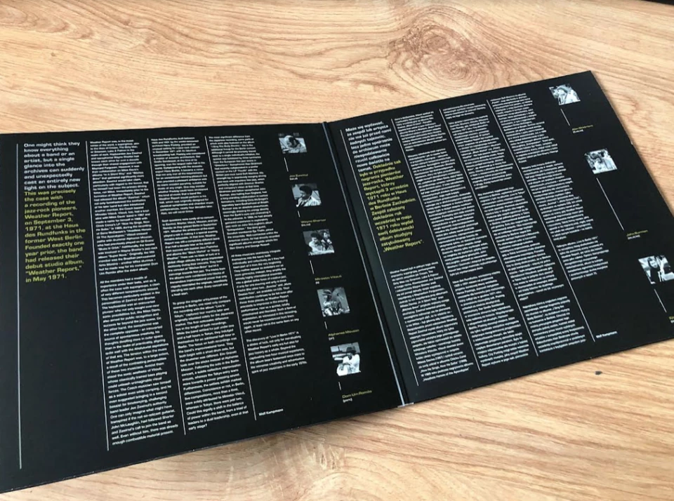 Podwójny winyl jednej z najlepszych polskich wytwórni specjalizujących się w nagraniach archiwalnych to cenny dokument z pierwszych lat mody na fusion. Zarejestrowany w berlińskim Haus des Rundfunks koncert Weather Report miał miejsce 3 września 1971 roku, czyli 4 miesiące po premierze debiutanckiego studyjnego albumu zespołu. Słychać zatem na nim ekscytację muzyków, którzy są pełni energii i mają świadomość, że ich twórczość przeżywa na świecie swoje pięć minut. Grają jak w szaleńczym transie, wspomagani przez artystów europejskiej sceny freejazowej, co stanowi dodatkowy walor tego zapisu.