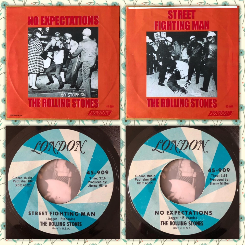 Mam kilka takich perełek (naturalnie w mojej ocenie). Oczko w głowie to singiel Stonesów "Street Fighting Man" LONDON RECORDS, US, 1968 rok. Nigdy niewydany w USA, ze względu na kontrowersyjną okładkę... Pojawił się jako reedycja w boksie wydanym przez ABKCO.