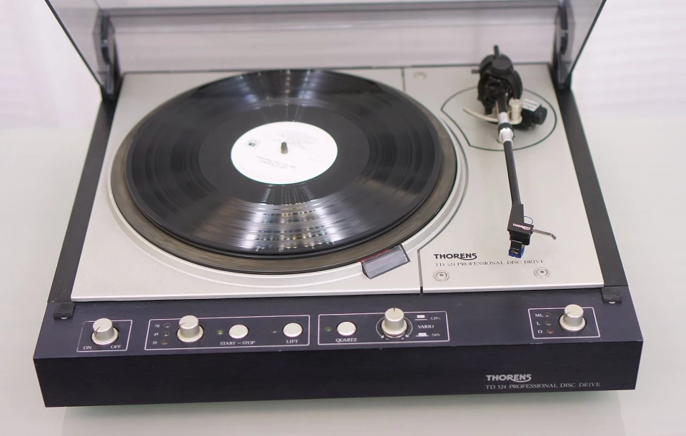 W 1982 r. Thorens stanął do walki z niełatwym przeciwnikiem - Technicsem SL-1200 MKII. Zaoferował gramofon z napędem bezpośrednim, model TD524. Już na samym wstępie tego pojedynku możemy się z perspektywy czasu domyślić jaki jest wynik. Thorens przegrał, zresztą nie tylko on. Technics nieprzerwanie króluje do dzisiaj. Nie jest to jednak powód, by nie przyjrzeć się temu świetnemu Thorensowi. O napędzie bezpośrednim już wspomniałem, obsługiwał 256 polowy silnik (!) prądu stałego, za kontrolę obrotów po raz pierwszy odpowiadał oscylator kwarcowy. Wprowadzono również bardzo ciekawą wersję ramienia TP16L zwaną również Spezial bądź po prostu długą wersją. Bardzo ciekawym wyposażeniem był system startu z konsoli miksującej.