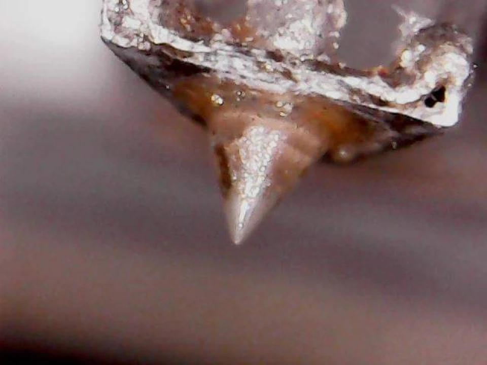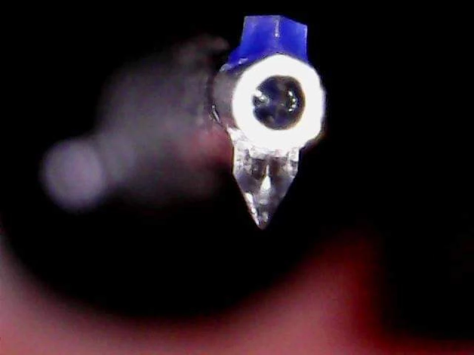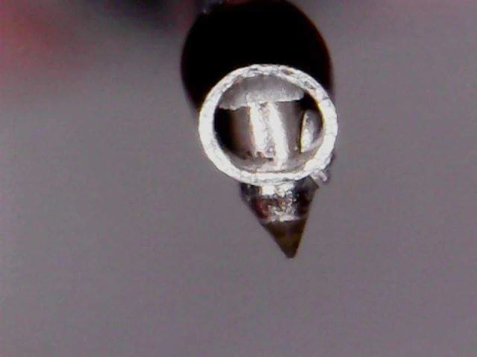 Ostatnim elementem który uważam, że warto omówić przed przedstawieniem samych typów szlifów jest sposób zamocowania diamentu lub materiału łączącego w wsporniku igły. Drogi są dwie: pierwsza polega na przyklejeniu do wspornika, druga na zrobieniu otworu w samym wsporniku - przez niego przechodzi diament lub materiał łączący, który dodatkowo jest od góry przyklejony klejem.
