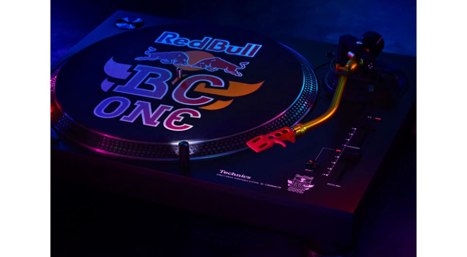 Czasami ciężko odnaleźć się w tych wszystkich mało intuicyjnych oznaczeniach, znajdujących się tuż za napisem SL-1200. W tym wypadku jednak bardzo łatwo można rozwiązać zagadkę. SL-1200MK7 RE oznacza limitowaną edycję modelu MK7 – a dokładnie jego wersję opracowaną we współpracy z mistrzami breakdance, Red Bull BC One. Zmiany względem regularnego modelu są wyłącznie kosmetyczne. Nie oznacza to jednak, że nie mają znaczenia! Ten model chwycił mnie za serce. Złota rurka ramienia zakończona czerwonym headshellem oraz mały znaczek Red Bull BC One, mówiąc kolokwialnie – robią robotę! Nie ma tutaj nawet cienia kiczu. Subtelne akcenty kolorystyczne doskonale odnajdują się w tej stylistyce. Czerwony headshell świetnie współgra z czerwonym światłem stroboskopowej lampki, a złota rurka ramienia jest intrygującym wtrąceniem stylistycznym. Nie zabrakło również spersonalizowanej dla tego modelu slipmaty. Nie może być inaczej – duże logo Red Bull BC One jest oczywistym dodatkiem.