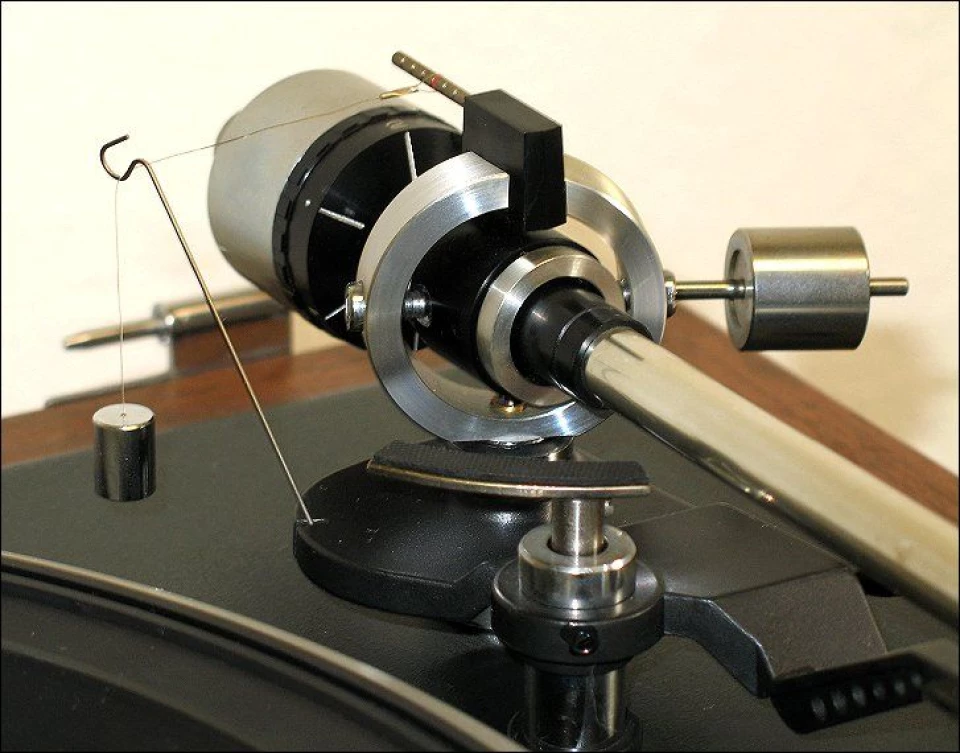 Niektóre przeciwwagi są jednak pozbawione tego pierścienia. Służą wówczas tylko do jego poprawnego zbalansowania. W gramofonach Thorensa oraz Duala występuje przy gimbalu drugie pokrętło, na którym jest naniesiona odpowiednia skala. Nie mam na myśli antiskatingu. Pokrętło pozwala nam ustawić odpowiedni nacisk. Taki system skonstruowany może być bardzo różnie. Od sprężynki, której odpowiedni naciąg ustawia nacisk, aż po systemy na dwóch magnesach, gdzie regulacja odległości dostosowuje siłę ich wzajemnego oddziaływania.
