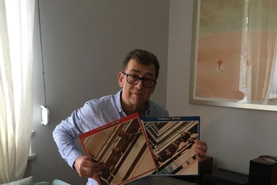 Na koniec chciałem opowiedzieć o płycie, która przyszła do mnie zza granicy. Był to album Beatlesów, ten czerwony z dwupłytowego wydania, drugi był niebieski. Oni na okładce stoją na jakimś balkonie, przy balustradzie. Jest to wydawnictwo z ich pierwszego okresu. To musiała być połowa lat siedemdziesiątych – dostałem ją w prezencie zza granicy. Miałem rodzinę w Anglii. Więc ta płyta przyszła i ja oczywiście łyknąłem wtedy bakcyla i moja miłość do Beatlesów trwa nieprzerwanie do dzisiaj. Ale brakowało mi do kolekcji tej drugiej części, tej niebieskiej, z nowszymi utworami. Kiedy byłem pierwszy raz w Anglii, u rodziny, to był 1978 rok, poszedłem do sklepu płytowego. Tam był raj. Wejść do sklepu płytowego, w którym dostępne jest wszystko, to niesamowite uczucie. Tylko, że drogo. Ale uzbierałem pieniądze i kupiłem ten niebieski album. Niestety finał tego jest taki, że z siostrą, dużo młodszą ode mnie, przy jakiejś przeprowadzce, któreś z nas coś zawaliło, nie pamiętam, czy ona, czy ja, i jedna z tych płyt z tego niebieskiego albumu zniszczyła się, pękła. Teraz myślę, że to by była niezła pamiątka, nawet uszkodzona, ale niestety nie mam jej już.