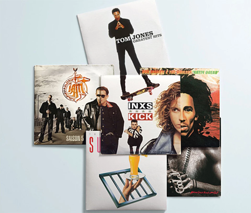 Dawno temu, kiedy nie było jeszcze memów, co więcej, w ogóle nie było internetu, Christian Marclay, projektant, performer, kompozytor muzyki i DJ (jest jednym z pierwszych DJ-ów na świecie, którzy płyty winylowe i gramofony postanowili wykorzystać jako instrumenty do tworzenia muzyki), tworzył niezwykłe kolarze korzystając z okładek winyli.
