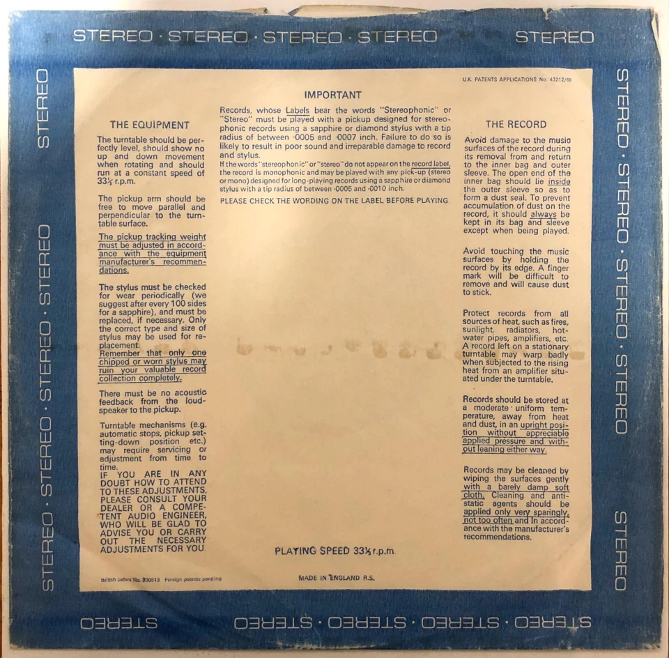 Wersja albumu na rynek brytyjski. Różniła się od amerykańskiej okładką oraz listą zamieszczonych utworów. Znaczącym detalem odróżniającym pierwsze tłoczenia od wznowienia w latach 70., to zabarwienie okładki. Chodzi dokładnie o dwie wersje: oryginalne wczesne pressy posiadały zdjęcie czarno białe, natomiast późniejsze były już z zielonkawym odcieniem, tzw. Green Cover.