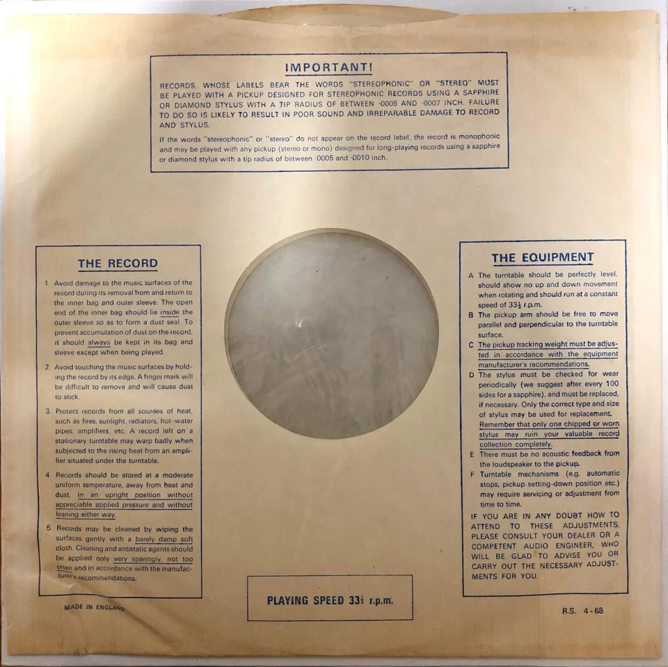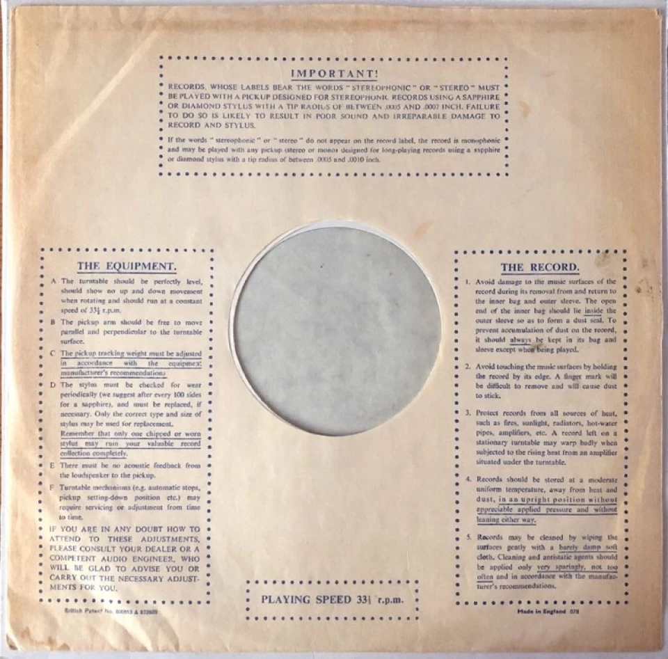 Temat, zazwyczaj traktowany po macoszemu, zatem wypada napisać kilka słów. Jeżeli chcemy podchodzić profesjonalnie do naszej kolekcji płyt Stonesów, a oczywiście podchodzimy, musimy zwracać też uwagę, w jakiej kopercie znajduje się sama płyta. DECCA w latach sześćdziesiątych i siedemdziesiątych używała kilku rodzajów kopert wewnętrznych. Niestety bardzo często mamy do czynienia z nieoryginalnymi egzemplarzami. Zatem warto dowiedzieć się, jakie były stosowane oryginalnie.