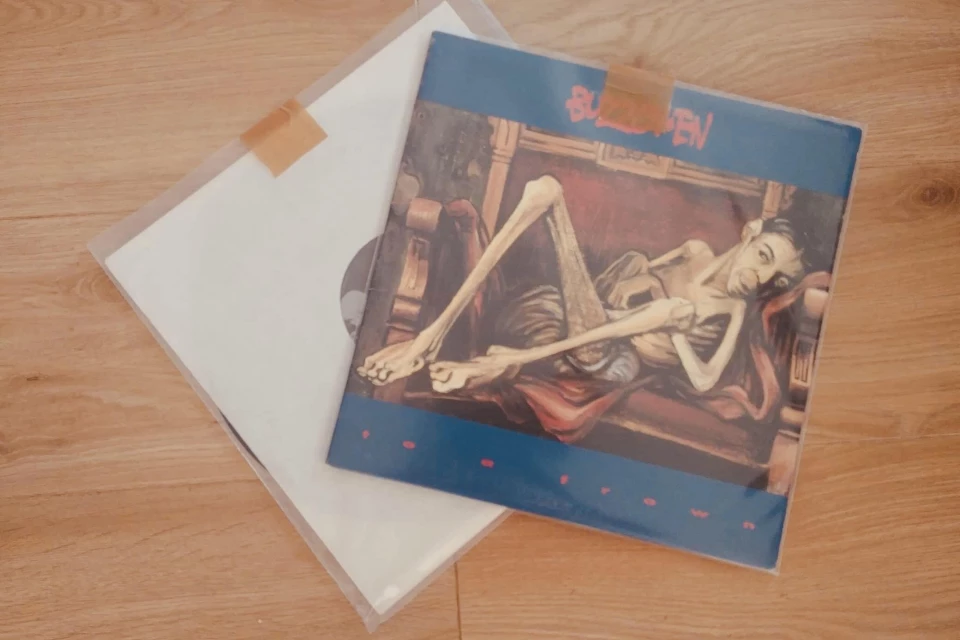Z kartonu wycinamy kwadrat niewiele większy od samej okładki. Gdy już nam się to uda, przystępujemy do zrobienia "winylowej kanapki". Na stole kładziemy okładkę, na nią wycięty kwadratowy kawałek kartonu i następnie płytę. Na każdym z boków łapiemy całość małym kawałkiem taśmy. Jeszcze tylko ucinamy dwa kawałki foli bąbelkowej – rozmiar dokładnie ten sam, co kartonu.