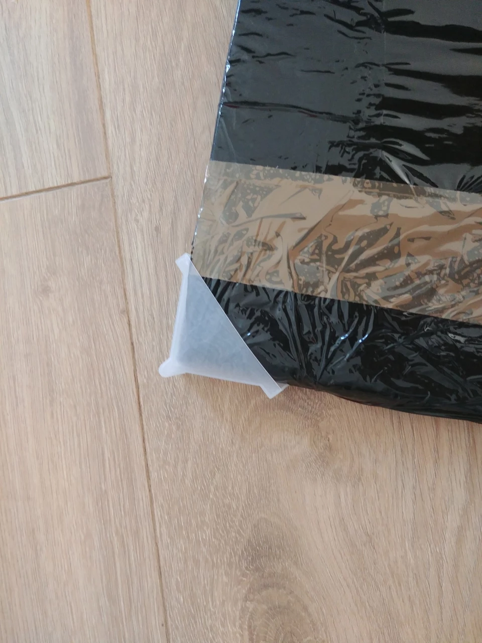 układamy w formie narożnika i przyklejamy do paczki. Nic nie stoi