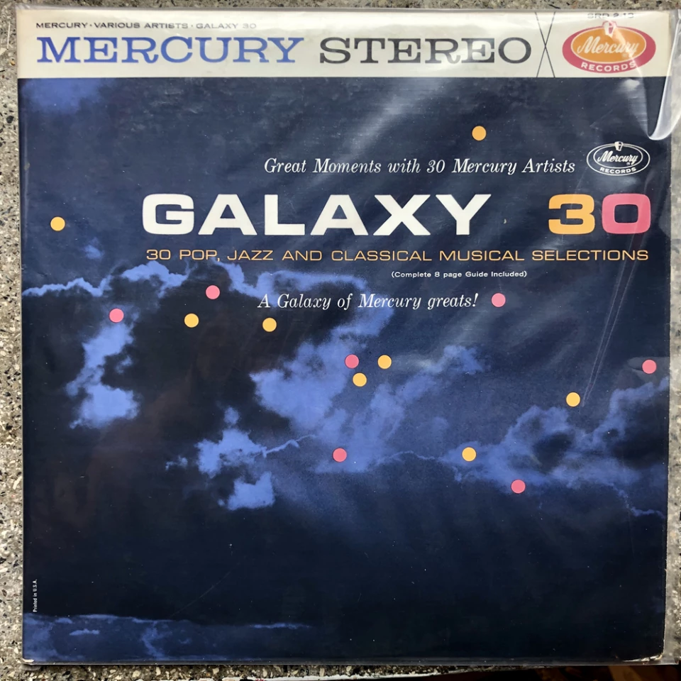 Galaxy 30 - Wydany w 1962 roku stereofoniczny dwupłytowy album, przedstawiający 30 utworów nagranych przez gwiazdy wytwórni Mercury. Od wielu wydawnictw typu "The best" odróżnia je wielostronicowa wkładka, w której oprócz materiałów reklamowych, znajdziemy krótkie notki opisujące każdy utwór, a także dokumentację sesji nagraniowych. Zamieszczono grafiki przedstawiające rozmieszczenie instrumentów, spis mikrofonów, którymi zbierano poszczególne sekcje, a także opis trzykanałowej techniki rejestracji orkiestry na 35 mm magnetycznej taśmie filmowej. Przez krótki czas w studiach nagraniowych oraz w dystrybucji pojawiały się urządzenia (magnetofony?), w których zamiast typowej taśmy zastosowano 35 mm taśmę filmową pokrytą nośnikiem magnetycznym. To jeden z wielu formatów zapisu dźwięku, który się nie przyjął na szerszą skalę. Wśród tekstów, jakie zamieszczono w tym wydawnictwie, jest też poradnik podpowiadający jak dbać o płyty oraz jakiego sprzętu używać do odtwarzania płyt stereofonicznych.