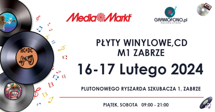 Moc muzyki w M1 Zabrze. Tradycyjnie, zapraszamy wszystkich fanów płyt winylowych oraz cd na XVII Kiermasz Płytowy, który odbędzie się w M1 Zabrze na pasażu przed Media Markt. Pasjonaci muzyki zapewnią Państwu tysiące płyt w każdym gatunku muzycznym, natomiast organizator Media Markt Zabrze promocyjnie umyje nowe nabytki w profesjonalnej myjce do płyt. Chcesz nabyć rzadkie tytuły do swojej kolekcji lub zrobić komuś prezent? Nie może Cię tam zabraknąć!