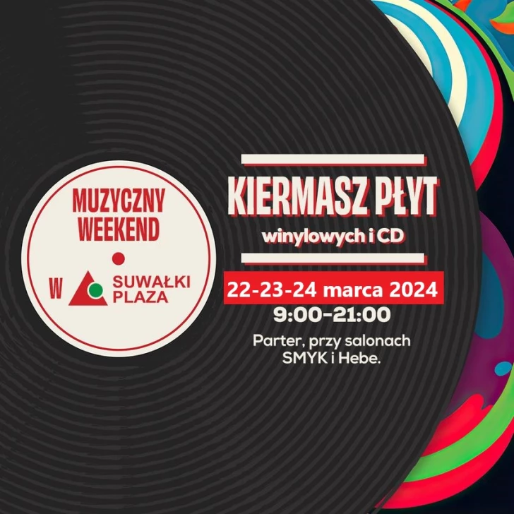 W dniach 22 marca (piątek), oraz 23 i 24 marca (sobota i niedziela) 2024 od 9.00 do 21.00 w Centrum Handlowym Plaza Suwałki, odbędzie się Kiermasz Winyli i CD, czyli muzyczny weekend w galerii.