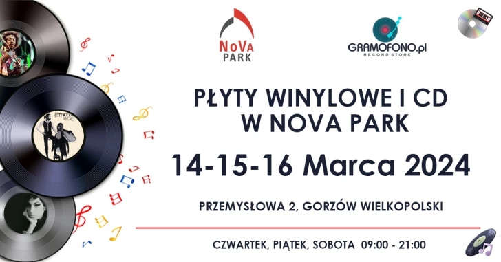 Zapraszamy po raz kolejny wszystkich fanów muzyki, płyt winylowych oraz cd na kolejny Kiermasz Płytowy, który odbędzie się w Galerii NoVa Park w Gorzowie Wielkopolskim. Pasjonaci muzyki zapewnią Państwu tysiące płyt w każdym gatunku muzycznym. Chcesz nabyć rzadkie tytuły do swojej kolekcji, zrobić komuś prezent lub po prostu porozmawiać o muzyce? Nie może Cię zabraknąć w NoVa Park Gorzów Wielkopolski.