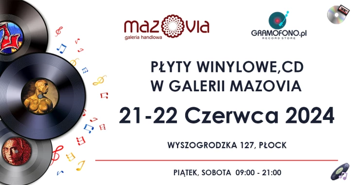 Zapraszamy wszystkich fanów muzyki, płyt winylowych oraz cd na kolejną edycję Kiermaszu Płytowego, który odbędzie się w Galerii Mazovia w Płocku. Pasjonaci muzyki zapewnią Państwu tysiące płyt w każdym gatunku muzycznym. Chcesz nabyć rzadkie tytuły do swojej kolekcji, zrobić komuś prezent lub po prostu porozmawiać o muzyce? Nie może Cię tam zabraknąć!