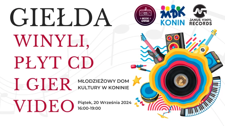 Serdecznie zapraszamy do uczestnictwa w Giełdzie Winyli i Płyt CD, gdzie będziecie mieli możliwość zakupu/wymiany/sprzedaży wszelakich rodzajów Płyt Winylowych, CD oraz Kaset od kolekcjonerskich wydań, po te - budżetowe wersje, zaczynające swoje ceny nawet od kilkunastu złotych.Event odbędzie się przy ul. Przemysłowej 3D w Młodzieżowym Domu Kultury w Koninie w godzinach 16:00 - 19:00Na miejscu, każdy znajdzie coś dla siebie - od zajawkowiczów poszukujących rzadkich wydań, po osoby które dopiero zaczynają kolekcjonowanie płyt czy kaset 🙂Posiadasz winyle, płyty cd lub kasety, których już nie słuchasz? Chętnie je zobaczymy i przygarniemy!WSTĘP BEZPŁATNY.Widzimy się na miejscu!
