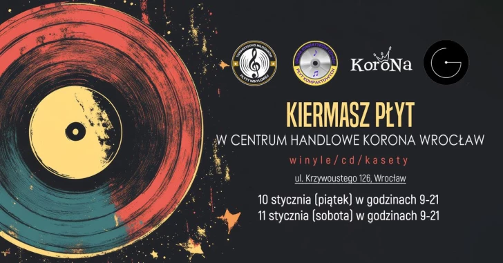 Zapraszamy serdecznie na kiermasz płyt winylowych i kompaktowych, który odbędzie się 10-11 stycznia w godzinach 9-21 w Galerii CH Korona Wrocław.