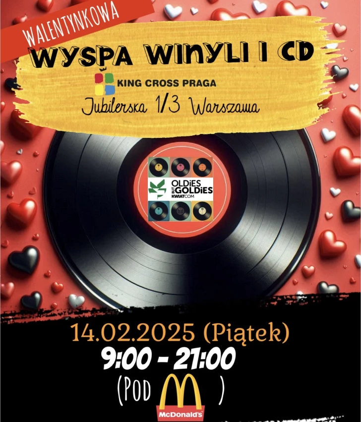 🎶 Zapraszamy na Walentynkową Wyspę Płyt Winylowych i CD! 🎶 szukajcie nas pod McDonalds 👌Nasz event to doskonała okazja żeby spotkać się z Nami i zanurzyć w magii analogowego dźwięku!