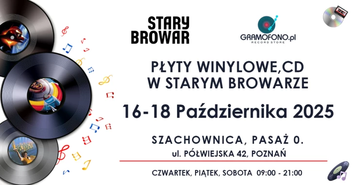 Zapraszamy wszystkich fanów muzyki, płyt winylowych oraz CD na Kiermasz Płyt Winylowych w STARYM BROWARZE w Poznaniu. Pasjonaci muzyki zapewnią Państwu tysiące płyt w każdym gatunku muzycznym. Chcesz nabyć rzadkie tytuły do swojej kolekcji, zrobić komuś prezent lub po prostu porozmawiać o muzyce? Nie może Cię u Nas zabraknąć.