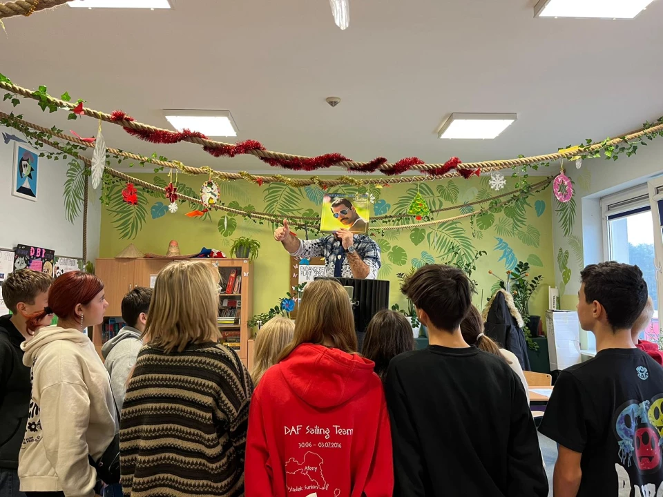 Zgadza się. W ramach projektu Erasmus utworzyłem dodatkowe zajęcia Klubu Czarnego Krążka. Rekrutacja była skierowana do klas 6-8. W tym roku szkolnym zapisały się 32 osoby, ale nie wszyscy wytrwali. Z czasem ta liczba zmalała, bo ktoś się wykruszył albo rozmyślił, albo wymagania projektowe były zbyt wysokie. Zajęcia te oparte na kulturze winylowej miały właśnie za zadanie wyłonić tych najbardziej zaangażowanych, którzy swoją indywidualnością i predyspozycjami sprawdzą się podczas wyjazdu do szkoły partnerskiej. W zeszłym roku była to Hiszpania w tym roku Włochy. W przyszłym roku planujemy pojechać gdzieś bliżej: Czechy, może Austria. Oczywiście nie zapominając zabrać ze sobą mnóstwo winyli :)