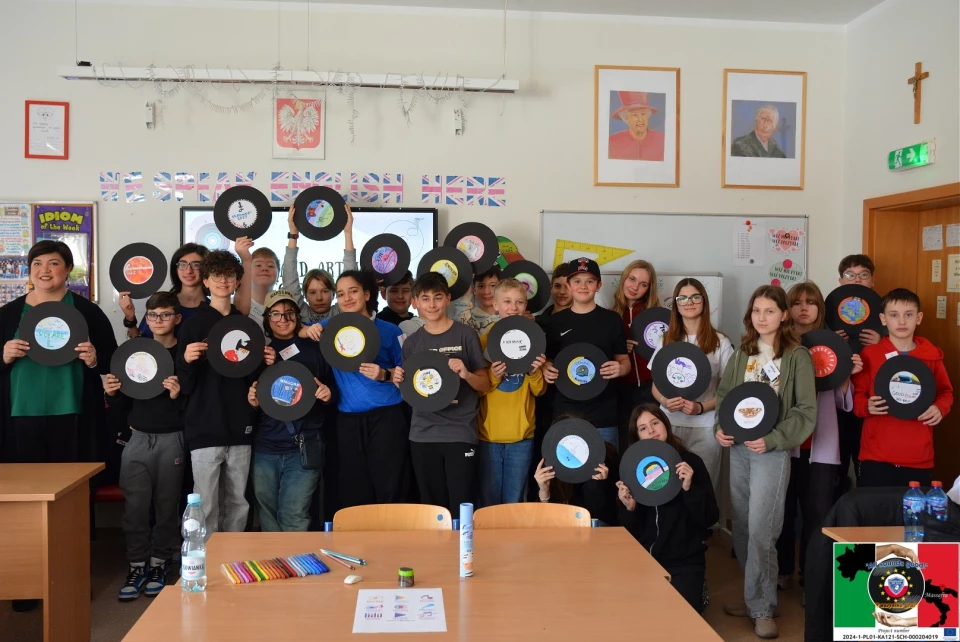 Bardzo przychylnie, za co chciałbym w tym miejscu podziękować pani dyrektor za wspieranie mnie w moich działaniach. Okazuje się, że w szkole im. „Wielkich Odkrywców” odkrywają nie tylko uczniowie :) To jest super, jak ktoś obok patrzy i dostrzega wartości, jakie wychodzą z czarnych krążków. Myślę, że punktem zwrotnym była ta pandemia, kiedy udało nam się zająć dzieciaki czymś oryginalnym i interesującym. Nasz projekt coraz bardziej stawał się zauważalny w naszej dzielnicy Wesoła. Niedługo później skontaktowała się ze mną i z panią dyrektor osoba od lat działająca w projektach erasmusowych – pani Anna Boguszewska. Stwierdziła, że to, co wymyśliliśmy jest świetne i warto wyjść z tym dalej, nawiązać współpracę ze szkołą partnerską z zagranicy i zrobić z nimi dokładnie to samo. Jako szkoła złożyliśmy więc wniosek do Narodowej Agencji Programu Erasmus+ i Europejskiego Korpusu Solidarności i spośród paruset zgłoszeń, proszę mi wierzyć, nasza placówka zdobyła najwięcej punktów. Dlatego obecnie dalej prowadzę winylowe zajęcia w ramach programu Erasmus+ i jesteśmy w stałym kontakcie ze szkołą z Hiszpanii. Właśnie przed chwilą wróciliśmy z uczniami z Włoch, z malowniczego regionu Apulia. Tam w szkole Istituto Comprensivo Pascoli Massafra również realizowaliśmy nasz projekt z wykorzystaniem płyt winylowych.