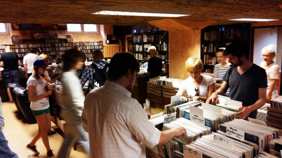 Na początku była to tylko sprzedaż książek, z czasem jednak ludzie zaczęli przynosić rozmaite rzeczy, w tym płyty CD, DVD i co sprawiło mi ogromną radość - winyle. Zazwyczaj były to pozycje, które nie cieszą się specjalnym wzięciem u klientów. Przede wszystkim polska muzyka pop z lat 60. i 70. Zespoły typu Mazowsze, Śląsk czy wschodnie wydania muzyki klasycznej, itp. Gdy trafiłem na rock, blues czy jazz to już była pełnia szczęścia.