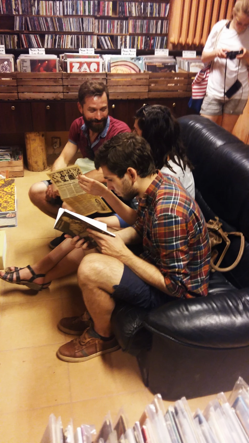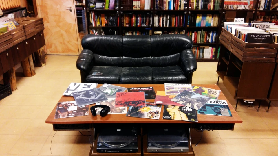 Dopiero później wpadłem na pomysł, aby muzyka była tam na pierwszym miejscu. Podstawą miały być winyle, ale są też płyty CD, kasety magnetofonowe, DVD z koncertami i filmami, książki muzyczne, itp. Ustawiliśmy dwie kanapy, trzy fotele, są odsłuchy na gramofonach, kompakcie, a nawet magnetofonie. Można napić się u nas kawy, Oranżady Grochowskiej, a nawet się zdrzemnąć, gdyż wygodne są bardzo te nasze siedziska...